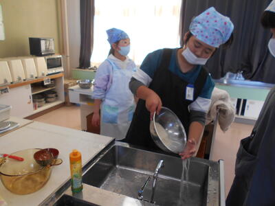 今回の訓練は、「地震発生後に、家庭科室から火災が発生した」という複合災害を想定して行いました。