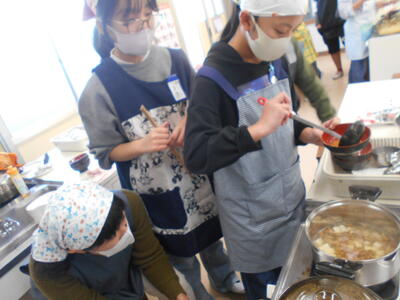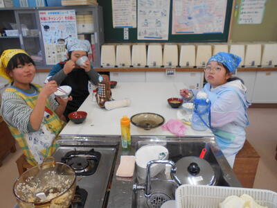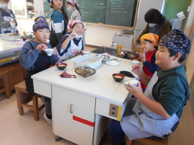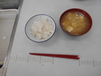 待ちに待ったご飯と味噌汁ができ上がると、みんな満面の笑みで実習の成果を味わっていました。