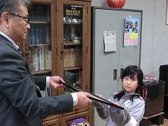 今年度二度目の表彰を校長室で行いました。表彰児童を全校放送で紹介し、対象者のみに校長室で賞状を伝達しました。サッカーや野球、バレーボール、テニス、書初めなど県レベルや全国レベルでの表彰児童もたくさんいました。
