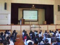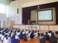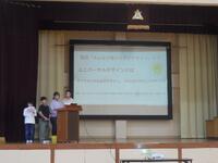 今週の日曜日に、城址公園ホールで「学習館祭り」が開催されます。今日の「北っ子タイム」に、学校代表で発表をする5年生「みんなでスポーツ~心をつなぐユニバーサルな世界~」と6年生「私たちのゼロカーボンへの取り組み」のリハーサルを全校生の前で行いました。どちらも総合的な学習の時間に1学期から取り組んできたことをまとめたものです。発表後、下級生から大きな拍手をもらった発表者の皆さん、当日も自信をもって発表してくださいね。