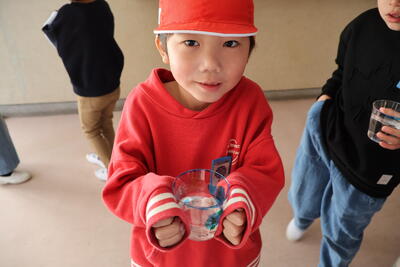 それぞれの氷の厚さを比べて楽しんでいました。先生から次は色水でやってみようか?と提案されると「やりたい!やりたい!」と子供たちの好奇心はぐんぐん高まっていました。やってみるから分かることがたくさんありますよ。どんどん挑戦してくださいね。
