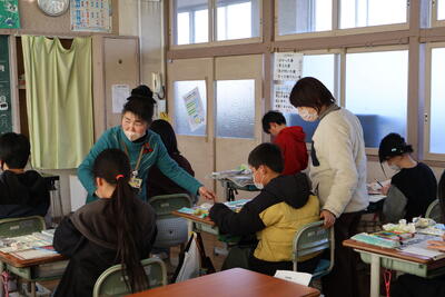 豆うつしや魚の身の取り方を楽しみながら体験したりしている児童の姿が見られました。