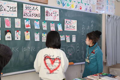 給食委員会は、昼休みの時間を使って栄養黒板や、お箸マナーの体験ブースを設置。