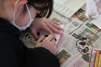 それぞれの想いを載せた絵手紙ができあがりました。雪だるまやパンダ、カニや馬と個性豊かな絵が並んでいました。