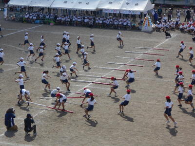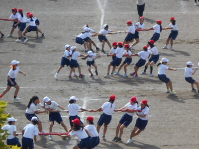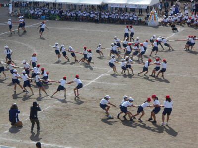 練習では、1回戦のみでしたが、児童の行動が早く、進行がスムーズなのでご褒美として今日は2回戦を実施しました。勝ち負けにばかりこだわらず、競技を赤も白も全員で楽しみました ♪