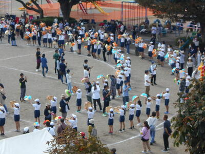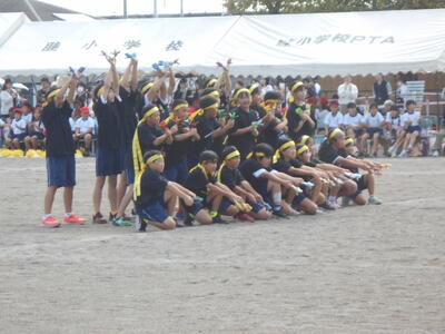 保護者、地域の皆様、多くの方にご声援いただき、睦っ子は、自分たちで掲げた「一致団結 力一杯 最後まで」のスローガンのもと、一人一人が輝いたすばらしい運動会となりました。