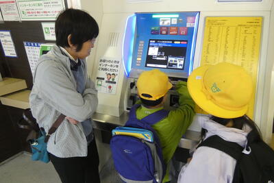 図書館には、電車を利用して向かいました。緊張していた人もいましたが、切符の買い方を練習したので、スムーズに利用することができました。