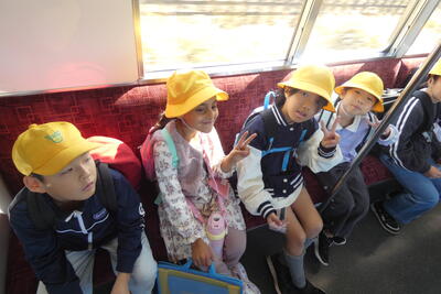 電車でのマナーに気を付けて、みんなで電車に乗ることができました。周りの景色を見ながら、静かに利用していましたね!