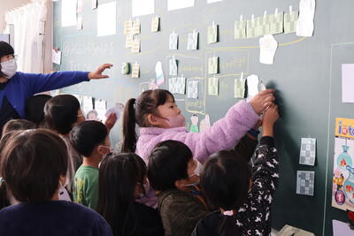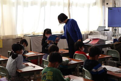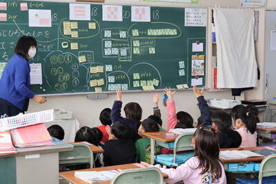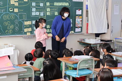 参観された園の先生からは「45分間座学かと思ったら、年長さんのように動いたり集まったりして学習が進められているので驚きました。」「たった1年であんなに自分の考えを発表できるようになっていて素晴らしいって思いました。」と幼保小連携の一助になる感想をいただきました。お忙しい中、足を運びいただき、ありがとうございました。
