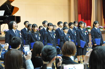 「別れのことば」では卒業生、在校生それぞれの想いを伝え合唱を送り合いました。とても温かな風に包まれていました。