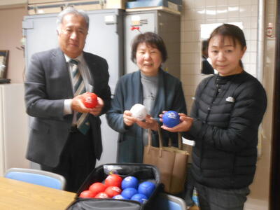 町内の子どもたちにボッチャの楽しさを知ってほしいという思いのもと、町内の小中学校へ1セットずつ届けてくださいました。