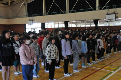 式後、児童指導から春休み中に気を付けたいことのお話が・・・事故や怪我無く、新学期を迎えられるようにしてください。