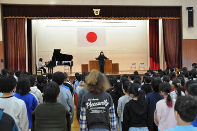 感謝の気持ちを伝えようと、口を大きく開く1・2年生の姿が印象的でした。
