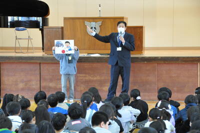 ボラランティアの皆様に「子どもたちが安心して学校生活を送れるのは、地域の温かい支えがあるからこそ」、子供たちには「感謝の気持ちを声にして伝えよう・ありがとうのリレーで将来はだれかの役にたつボランティアに」というお話がありました。