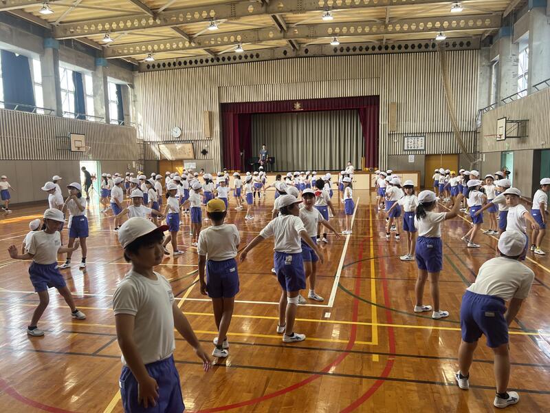 今日から運動会の練習が始まりました。校庭や体育館で低・中・高学年に分かれて行っています。今年の運動会のスローガンは、「仲間と共に支え合い 信じて進め勝利への道」です。みんなで協力して素敵な運動会にしていきましょう。