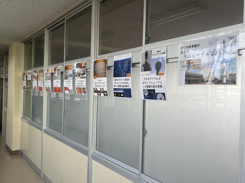 理科室前の廊下を通ると、10月3日にリニューアルオープンした「栃木県こども総合科学館」について掲示してあります。理科の先生と話をすると、令和6年1月から休館し大規模改修工事をしていたので、待ちに待ったオープンだったそうで、早速訪れ、いろいろ体験してきたようです。