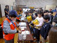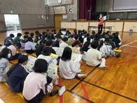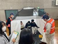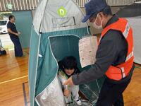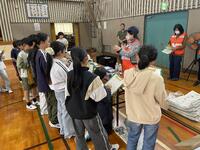 2校時に4年生が防災出前授業を行いました。町の防災士の皆様に御来校いただきました。防災についての講話、防災クイズや避難テントや非常トイレの体験をしました。