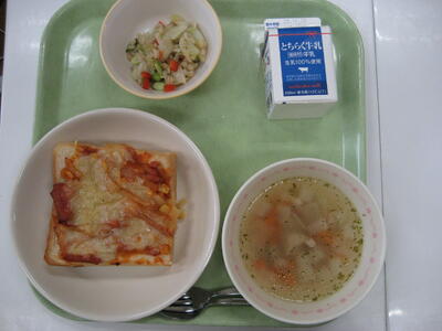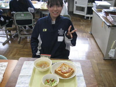 2年生女子が作ったオリジナルトースト! 投稿日時 : 10/16 南犬飼中学校管理者 カテゴリ: 10月16日(木)、今日の給食のメニューは「ポテトピザトースト、もち麦入りサラダ、角切野菜スープ、牛乳」です。このメニューは、2年生の夏休みの課題で出された「オリジナルトーストを作ろう!」のレシピの中の一つです。10月から2月にかけて計5回、生徒が作ったレシピのメニューを出す予定です。アイデア満載、栄養満点の給食をいかがですか? レシピを作った2年生女子 栄養満点で美味しそうです! 1年3組の給食の様子!「とても楽しそうです」 1年2組の給食の様子!「美味しくて、笑みがこぼれます!」 {{options.likeCount}} {{options.likeCount}}