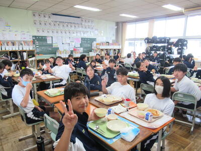 学校生活の様子・ブログ 全ての記事 全ての記事 カテゴリ 学校行事 第1学年 第2学年 第3学年 特別支援学級 部活動 生徒会活動 学校生活 アーカイブ 2025年10月 (10) 2025年9月 (24) 2025年8月 (3) 2025年7月 (23) 2025年6月 (25) 2025年5月 (25) 2025年4月 (16) 2025年3月 (13) 2025年2月 (21) 2025年1月 (17) 2024年12月 (14) 2024年11月 (14) 2024年10月 (23) 2024年9月 (13) 2024年8月 (4) 2024年7月 (15) 2024年6月 (22) 2024年5月 (13) 2024年4月 (13) 2024年3月 (22) 2024年2月 (25) 2024年1月 (20) 2023年12月 (25) 2023年11月 (27) 2023年10月 (27) 2023年9月 (27) 2023年8月 (11) 2023年7月 (22) 2023年6月 (29) 2023年5月 (35) 2023年4月 (28) 2023年3月 (28) 2023年2月 (27) 2023年1月 (17) 2022年12月 (28) 2022年11月 (23) 2022年10月 (22) 2022年9月 (28) 2022年8月 (12) 2022年7月 (16) 2022年6月 (26) 2022年5月 (22) 2022年4月 (19) 2022年3月 (25) 2022年2月 (22) 2022年1月 (24) 2021年12月 (26) 2021年11月 (25) 2021年10月 (23) 2021年9月 (16) 2021年8月 (4) 2021年7月 (9) 2021年6月 (6) 2021年5月 (7) 2021年4月 (6) 2021年3月 (14) 2021年2月 (13) 2021年1月 (5) 2020年12月 (14) 2020年11月 (5) 2020年10月 (6) 2020年9月 (8) 2020年8月 (4) 2020年7月 (8) 2020年6月 (8) 2020年5月 (17) 2020年4月 (12) 2020年3月 (3) 2020年2月 (2) 2020年1月 (7) 2019年12月 (0) 2019年11月 (2) 2019年10月 (6) 2019年9月 (8) 2019年8月 (0) 2019年7月 (4) 2019年6月 (7) 2019年5月 (2) 1件 1件 5件 10件 20件 50件 100件 2年生女子が作ったオリジナルトースト! 投稿日時 : 10/16 南犬飼中学校管理者 カテゴリ: 10月16日(木)、今日の給食のメニューは「ポテトピザトースト、もち麦入りサラダ、角切野菜スープ、牛乳」です。このメニューは、2年生の夏休みの課題で出された「オリジナルトーストを作ろう!」のレシピの中の一つです。10月から2月にかけて計5回、生徒が作ったレシピのメニューを出す予定です。アイデア満載、栄養満点の給食をいかがですか? レシピを作った2年生女子 栄養満点で美味しそうです! 1年3組の給食の様子!「とても楽しそうです」 1年2組の給食の様子!「美味しくて、笑みがこぼれます!」 {{options.likeCount}} {{options.likeCount}} 123456789 »