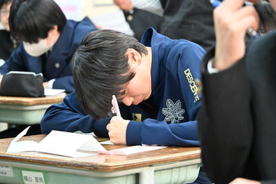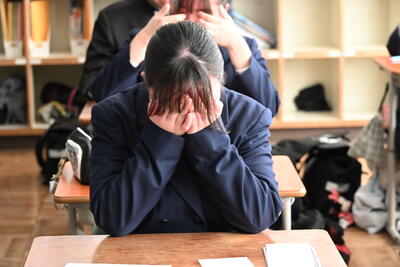 保護者からの手紙を読み涙する生徒の様子