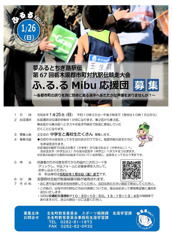 【ふ.る.るMibu】第14回壬生町ゆうがおマラソン大会給水所スタッフ募集について