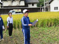 校長の話で、ご飯一杯分にはどのくらいの稲が必要なのか学び、お世話になった山川様や柏﨑様に感謝した後、