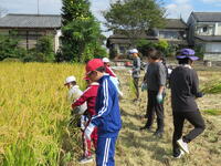 ただきました。1年生は6年生に刈り方を教わりました。最後に代表児童もしっかりとお礼の言葉が伝えられました。