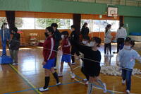 「おにはそとっ!!」と元気な声が体育館に響き渡りました。