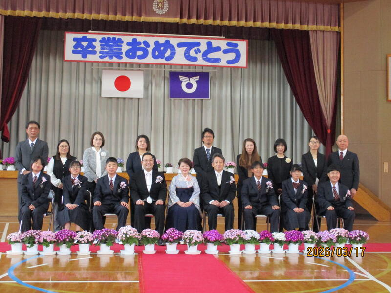 本日、PTA会長様や自治会長様を始め来賓の皆様と 保護者の皆様に臨席を賜り、無事卒業式が挙行されました。6名の卒業生が、立派に卒業証書をうけとり、また1~5年生も長時間の儀式を立派な態度で過ごすことができました。特に、別れの言葉や校歌斉唱では、大きな声で門出を祝い、見事でした。