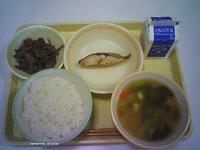 今日の給食は、写真のように和食です。立派なアジの切り身が出ています。青魚もしっかり食べてほしいですね。