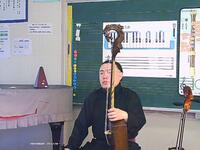 さらにモンゴルの伝統楽器である馬頭琴の生演奏も聴かせていただきました。間近で見る演奏に、うっとりとした表情で耳を傾けていました。「夕焼け小焼け」「幸せなら手をたたこう」など、音楽の授業や全校音楽で親しんだ曲が演奏されると、歌声が広がり、温かい雰囲気に包まれました。