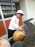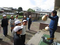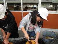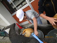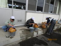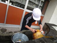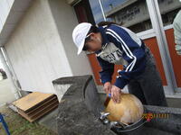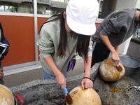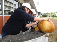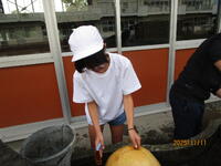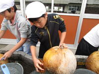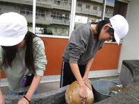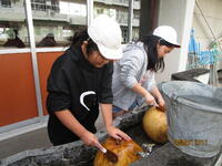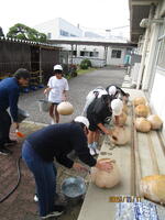 今日は、高橋先生の指導の下、収穫した夕顔の実をたわしできれいにしました。