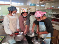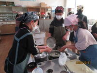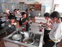 12月17日に、ご飯と味噌汁を作りました。ご飯は鍋で炊いて、味噌汁は煮干しからだしを取りました。おいしくできて、みんな満足です。
