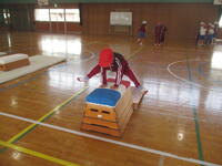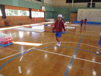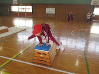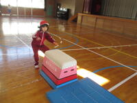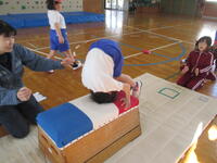 1・2年生は、体育の時間に、なわとびと跳び箱を行っています。