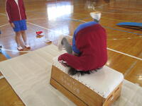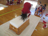 さらに、跳び箱の上で前回りをする「台上前転」に挑戦する姿も。