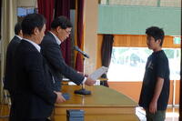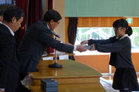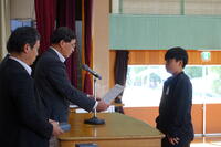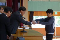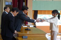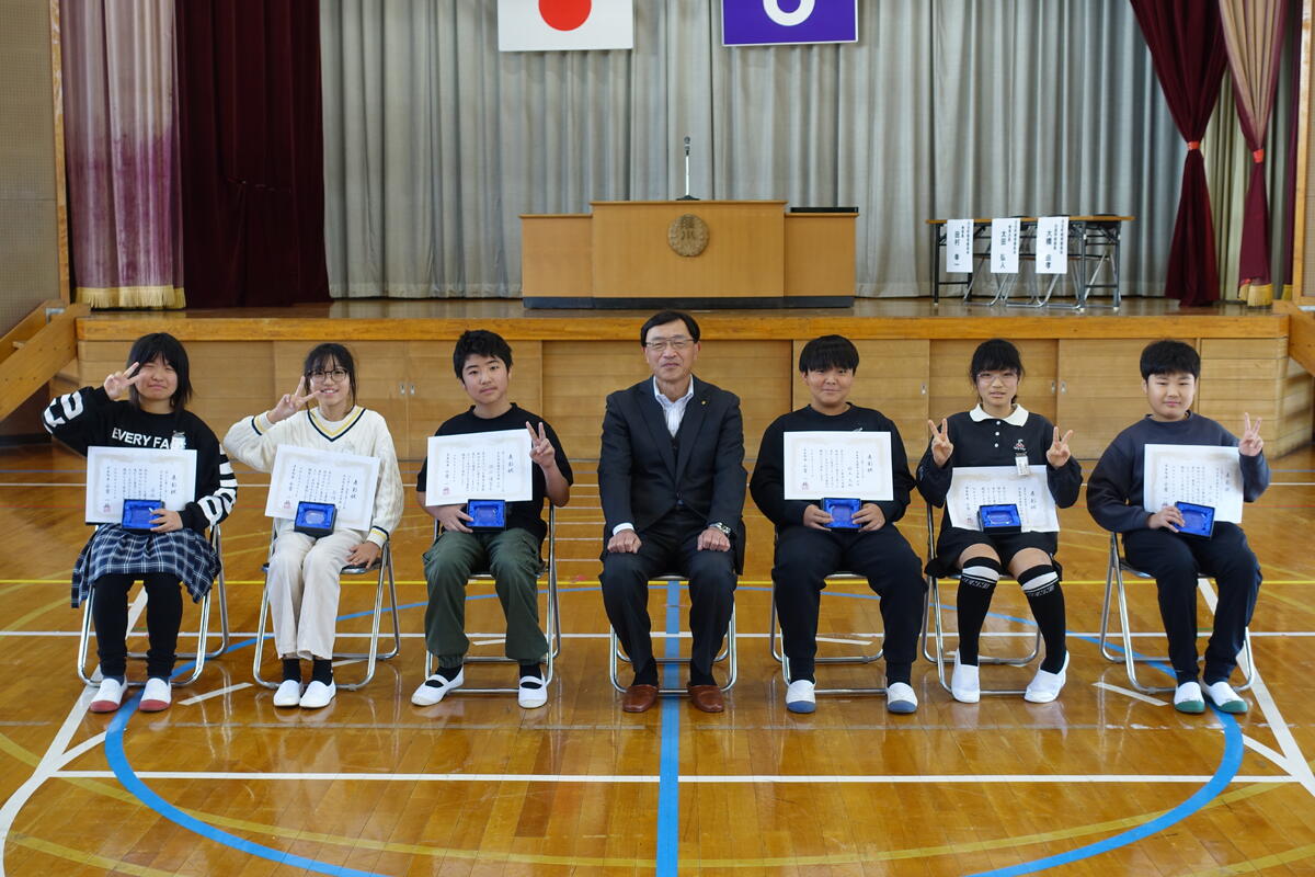 1~5年生、保護者、職員が見守る中、6年生は立派に表彰を受けとることができました。返事・礼など、一人一人がしっかりと準備してきたことが伺えます。また、お礼の言葉を、6人全員で呼びかけで述べましたが、息ぴったりで伝えることができました。これも、担任を中心に全員で盛り上げようという心構えができていたからだと思います。この様子を見ていた5年生をはじめ下級生は、6年生に対し尊敬の念を抱いたのではないでしょうか? 6年生は残りの五ヶ月、さらにパワーアップして、学習・運動に、さらには生活面でがんばってくれることを期待します。