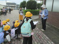 ベランダから体育館に避難した後は、防災教室を実施。校長からは、不審者とは?日頃から気をつけることは?等話をしました。また、「いかのおすし」の確認、万が一襲われたときの逃げ方など指導いただき、内容の濃い有意義な体験となりました。