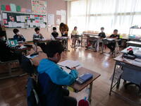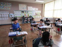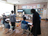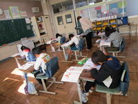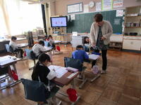 授業の様子その①に続いて「その②」を掲載いたしました。今回は1年生の書写と4年生の算数、4~6年生の合同体育です。1年生の書写は教務主任の授業です。どの学年も担任以外の職員が授業を行っている学習があります。