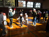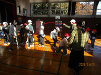 異学年を2グループにして「8の字跳び」に挑戦しています。グループ毎に5分間に何回跳べるか目標回数を掲げ、どうすれば記録更新できるのかと話し合いながら挑戦しています。連続跳びや間をあけて跳ぶ児童と様々です。互いを気遣いながら跳んだり、アドバイスをしたりする姿が見られます。28日(水)の「長縄跳び記録会」が楽しみです。心を合わせて羽っ子ジャンプ!