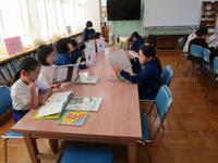 読書旬間中の「さわやかタイム」では、図書室に全児童と担任が集まり全校読書を行っています。図書室はとっても静かで、集中している姿を見ると、一人一人が読んでいる本の世界を楽しんでいることが感じられます。私も一緒に読書をしようと本を手にしました。朝の落ち着いた時間を過ごすことは心と頭にとって大切なことです。