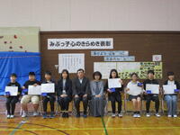 10月31日(金)「みぶっ子心のきらめき表彰」が行われました。壬生町が主催となり、児童の自己有用感を高めることを目的として実施されています。教育長より一人一人に賞状と記念品が授与されました。記念品には、家族が考えた賞の名前が刻まれています。代表児童からは、1年生からの成長を振り返り、家族に感謝する言葉が述べられました。表彰の後には、全校合奏を行い、6年生にとっては最後の合奏となり心もこもった演奏を披露していました。