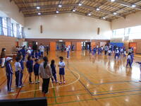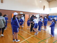 その後は、6年生が1年生に優しく教える時間です。1年生も、お兄さん・お姉さんに励まされながら、一生懸命に練習に励んでいました。