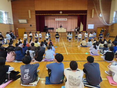 代表として壇上に上がった子供たちは、賞状を受け取ると、誇らしげな表情を浮かべていました。全校児童からは、友達の努力を称える温かい拍手が送られました。