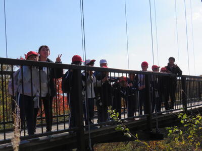 午後はオリエンテーションで、自然の家からつつじ吊り橋まで歩きました。