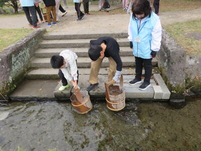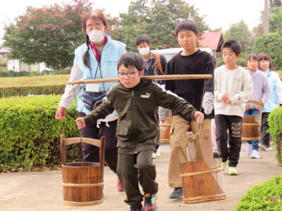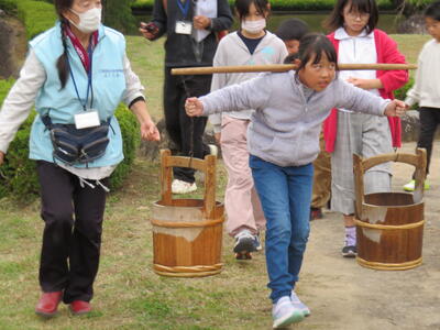 地域の自然や歴史・文化を分かりやすく紹介してもらいました。そして、実際に使われていた道具を用いた体験学習もしました。