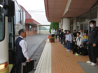 30日朝、みんな大きな荷物を持って、元気いっぱいに登校。