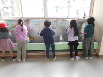 休み時間が終わると、さっそく石鹸を使って丁寧に手を洗う子供たちの姿が見られました。