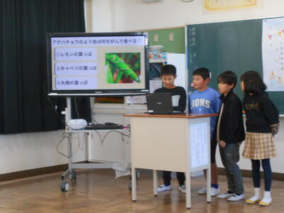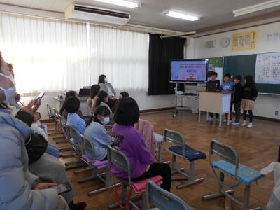 各学級では、この一年間で「できるようになったこと」や「頑張ったこと」を伝える発表会形式の授業が行われました。