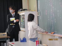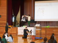11月18日、4年生の社会科出前授業として、防災教室を実施しました。今回は、防災士の方と役場の消防防災係の方を講師にお迎えしました。最初は、防災に関する基本的なお話を聞きました。その後、「なまずの学校」という防災のためのカードゲームに挑戦。災害時にどんなものが必要になるかなど、ゲームを通して楽しみながら、防災への意識を高めることができました。