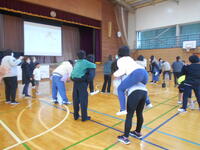 3時間目は、子育て親育ち講座(3年)です。『親子ででれあい スマイルミッション』と銘打って、親子で様々なゲームを行いました。子供たちの元気な笑い声と、それを見守る保護者の皆さんの温かい笑顔が体育館いっぱいに広がり、終始和やかな雰囲気でした。日頃なかなか取る機会のない親子のふれあいの時間を、ゲームを通じて存分に楽しんでいただけたようです。